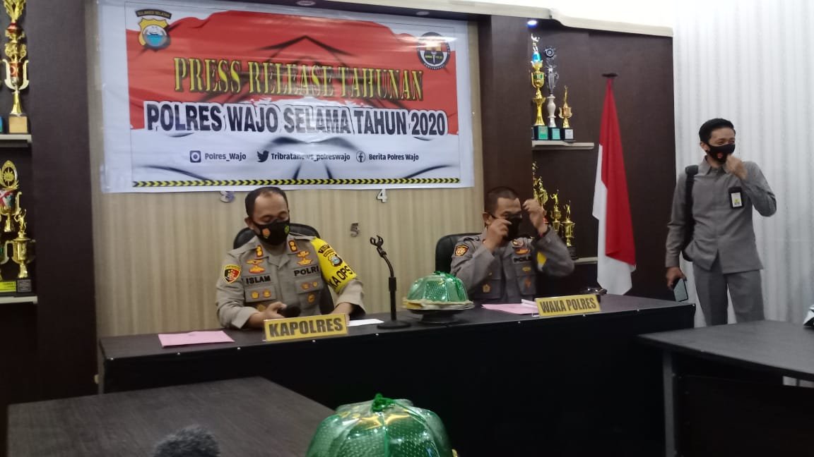 Hal tersebut disampaikan Kapolres Wajo, AKBP Muhammad Islam Amrullah S.IK MM, saat menggelar press release akhir tahun 2020, di Aula Wira Pratama, Kantor Polres Wajo, Rabu 30 Desember 2020.