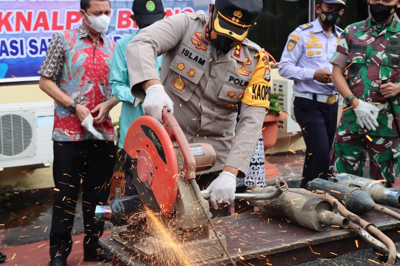 Polres Wajo Musnahkan Barang Bukti Miras Dan Knalpot Racing