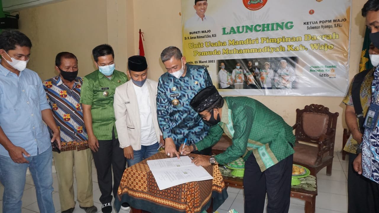 MEDIABAHANA.COM, WAJO — Bupati Wajo H. Amran Mahmud menghadiri Launching Unit Usaha Mandiri Pimpinan daerah (PD) Pemuda Muhammadiyah Kabupaten Wajo Kamis, 25 Maret 2021. Kegiatan tersebut digelar di PUsdam Pusat Dakwah Muhammadiyah.