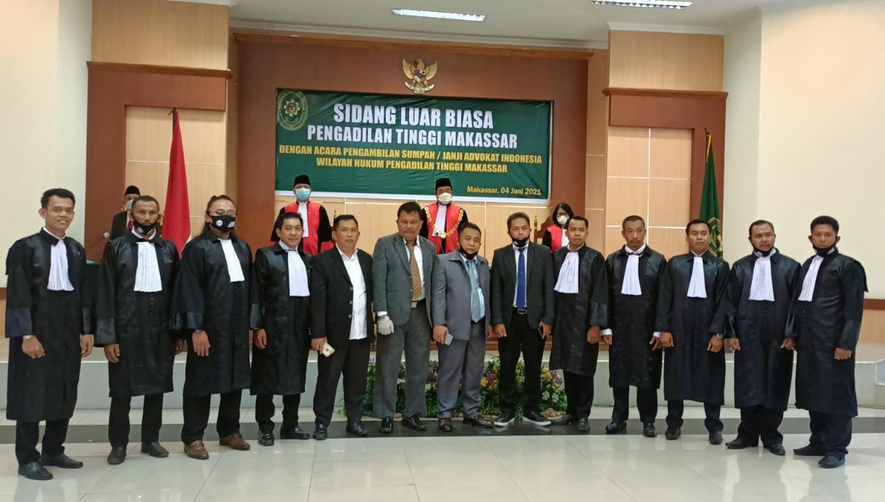 MEDIABAHANA.COM, WAJO — Ketua Pengadilan Tinggi Makassar, mengambil sumpah 31 Advokat dari organisasi Perkumpulan Advokat Muslim Indonesia (Peradmi), Jumat 4 Juni 2021 di Pengadilan Tinggi Makassar.
