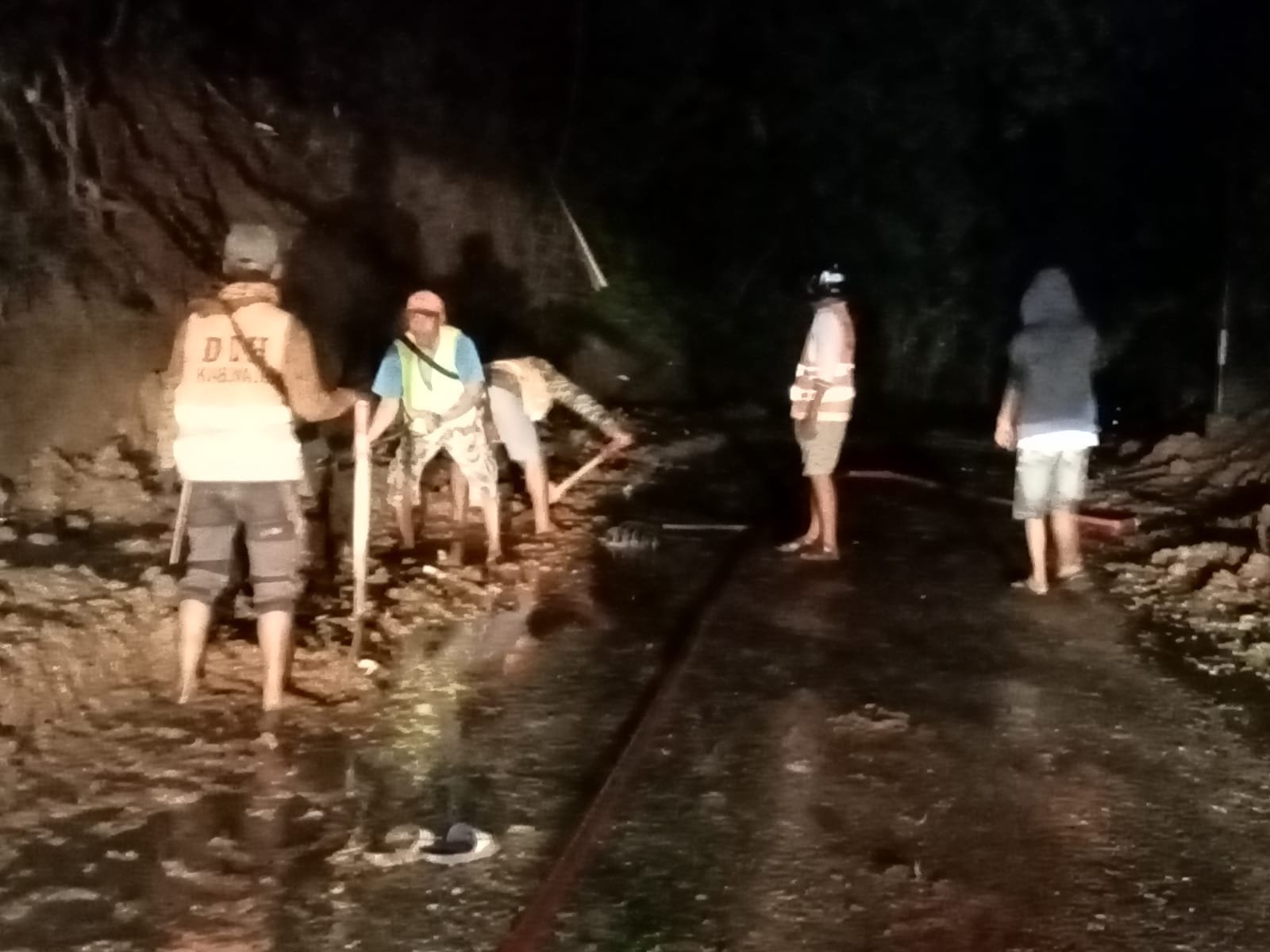 Pekerjaan pembersihan tanah longsor akhirnya selesai dikerja pada pukul 20.00 malam WITA.