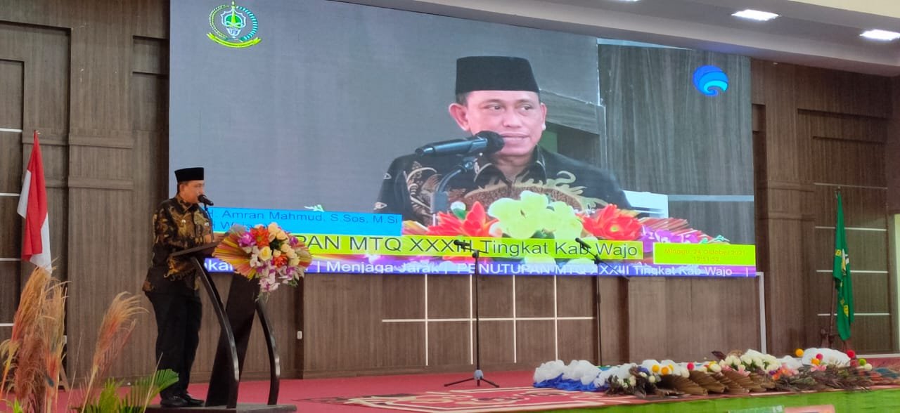MEDIABAHANA.COM, WAJO — Bupati Wajo, Amran Mahmud menghadiri sekaligus menutup secara resmi kegiatan Musabaqah Tilawatil Qur’an (MTQ) ke XXXIII tingkat Kabupaten Wajo di Ruang Pola Kantor Bupati Wajo, Ahad (24/10/2021).