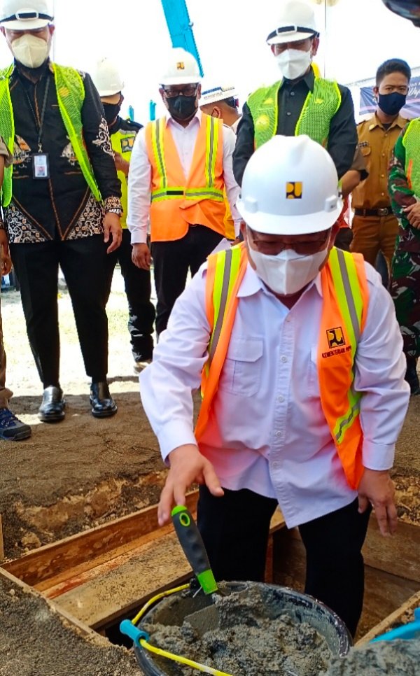 Kepala Balai Prasarana Pemukiman Wilayah Sulawesi Selatan, Ahmad Asiri, saat peletakan batu pertama pembangunan Pasar Tempe (foto : Gus)
