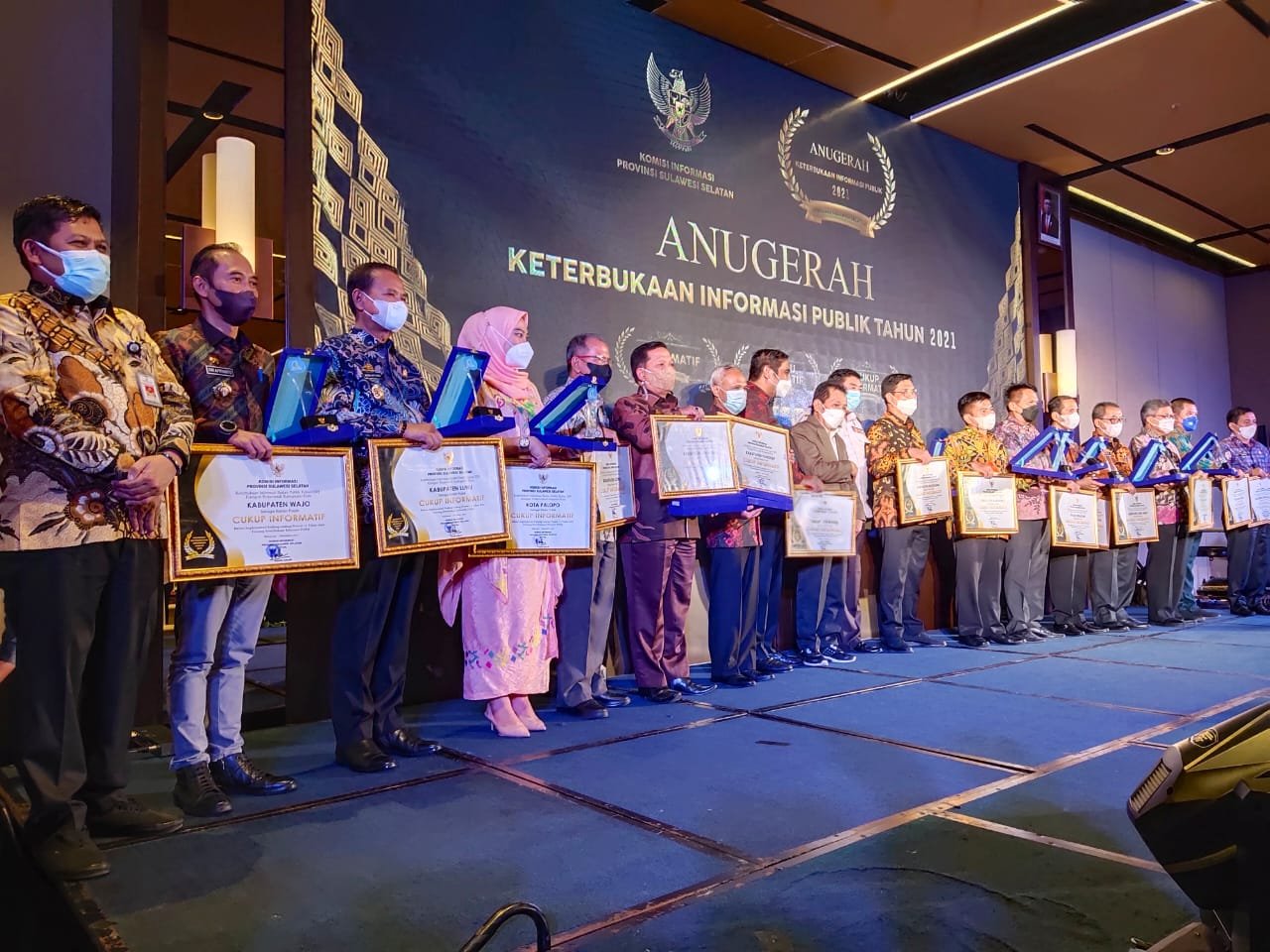 MEDIABAHANA.COM, MAKASSAR — Pemerintah Kabupaten Wajo kembali mendapatkan penghargaan. Penghargaan kali ini datang dari Komisi Informasi (KI) Provinsi Sulawesi Selatan yakni Keterbukaan Informasi Publik Tahun 2021 Kepada Pemerintah Kabupaten/Kota se-Sulawesi Selatan. Kabupaten Wajo mendapatkan kategori Cukup Informatif bersama 9 Kabupaten/Kota lainnya.