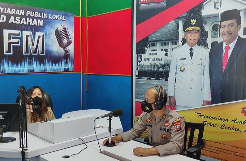 Ia menyambangi radio Pemerintah Kabupaten (Pemkab) Asahan di jalan Jendral Ahmad Yani, Kota Kisaran Barat, Kabupaten Asahan untuk menyampaikan pesan Kamtibmas kepada masyarakat serta mendukung upaya pencegahan dan penyebaran Covid-19 di Kabupaten Asahan, Kamis (3/3/2022).