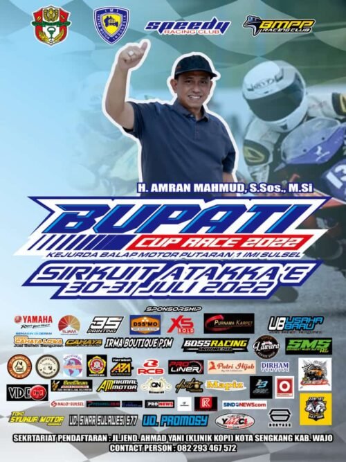 MEDIABAHANA.COM, WAJO — Bupati Cup Road Race 2022 Kejuaraan Daerah (Kejurda) Balap Motor Putaran 1 Ikatan Motor Indonesia (IMI) Sulawesi Selatan bakal digelar di Sirkuit Atakkae, Sabtu – Minggu, 29-30 Juli 2022 mendatang.