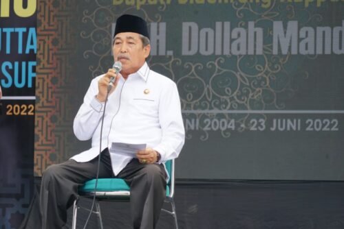 MEDIABAHANA.COM SIDRAP — Bupati Sidrap, H. Dollah Mando menghadiri haul ke-18 Anregurutta KH Abdul Muin Yusuf yang akrab dipanggil Kali Sidenreng di Pondok Pesantren Al-Urwatul Wutsqaa Benteng, Kecamatan Baranti, Sabtu (6/8/2022).