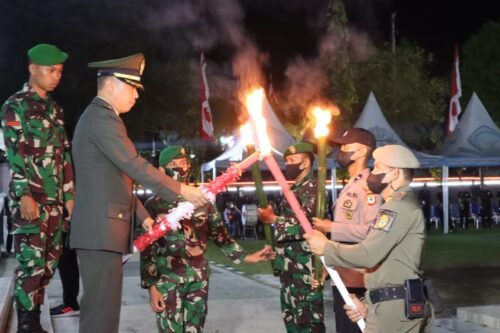 Upacara yang dilanjutkan pawai obor merupakan salah satu rangkaian kegiatan dalam memeriahkan dan menyambut peringatan HUT Kemerdekaan RI ke-77, 17 Agustus 2022.