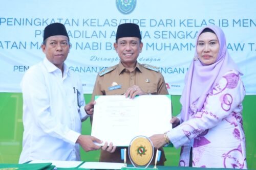 MEDIABAHANA. COM, WAJO – Bupati Wajo, Amran Mahmud, menyambut positif Pengadilan Agama (PA) Sengkang yeng telah meningkat tipe atau kelasnya dari kelas IB menjadi IA. Hal ini diharapkan sejalan dengan makin baiknya pelayanan kepada masyarakat.