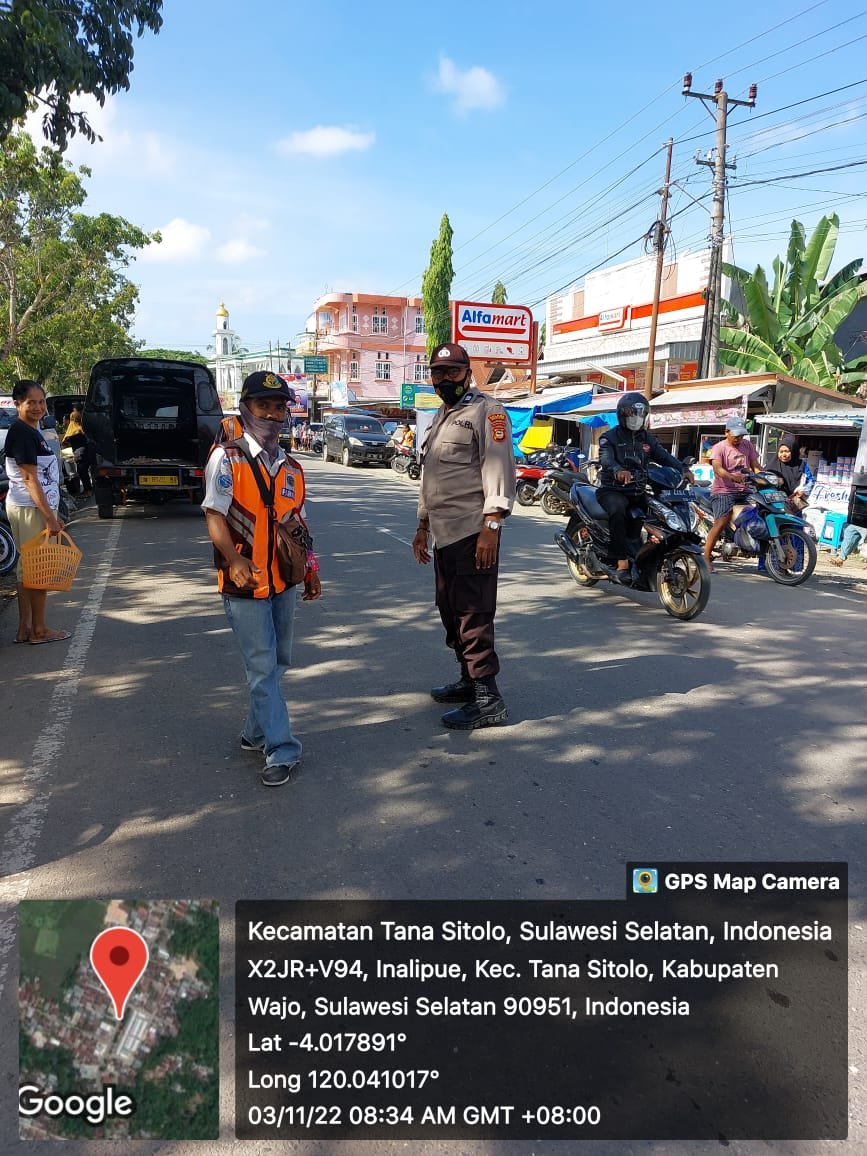 Selain melaksanakan PAM juga pengaturan di pasar Lajoka Kecamatan Tanasitolo sekaligus menyampaikan agar tetap menjalankan protokol kesehatan guna memutus mata rantai penyebaran virus covid – 19.