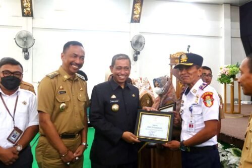 Kadishub Wajo, A. Hasanuddin menerima penghargaan dari Bupati Wajo, H. Amran Mahmud (hms)