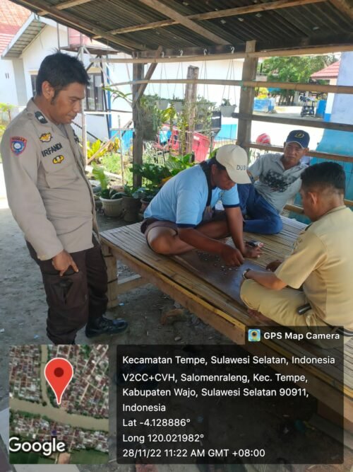 MEDIABAHANA.COM, WAJO — Bhabinkamtibmas Polsek Tempe Polres Wajo melakukan giat sambang warga posko kampung tangguh ( Balla Ewako ) di Kelurahan Salomenraleng Kecamatan Tempe Kabupaten Wajo, Senin,28/11/2022.