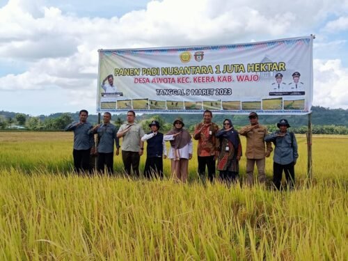MEDIABAHANA. COM, WAJO — Pemerintah Kabupaten Wajo terus berupaya mendukung ketersediaan pangan secara nasional. Hal tersebut terungkap pada pelaksaanan Panen Padi Nusantara di Kabupaten Wajo di Desa Awota, Kecamatan Keera, Kamis (9/3/2023).