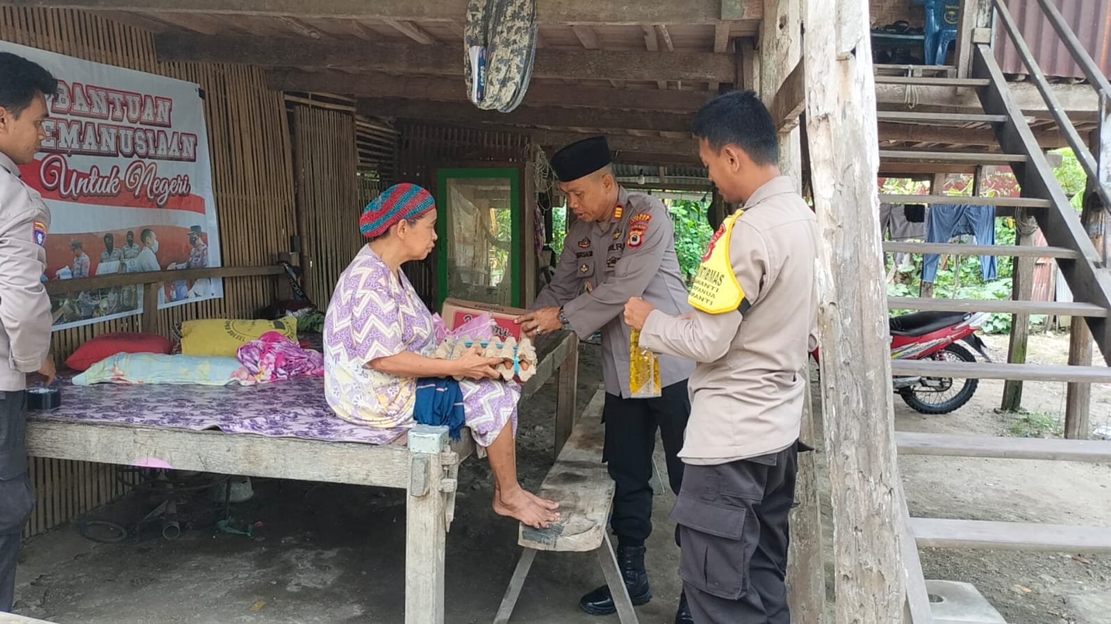 Bantuan yang diberikan Kapolsek Baranti terhadap warga di Dusun Passeno I, Kel. Duampanua, Kec. Baranti, Kab. Sidrap berupa bahan pokok penting seperti Beras, minyak goreng, mie instan dan telur.