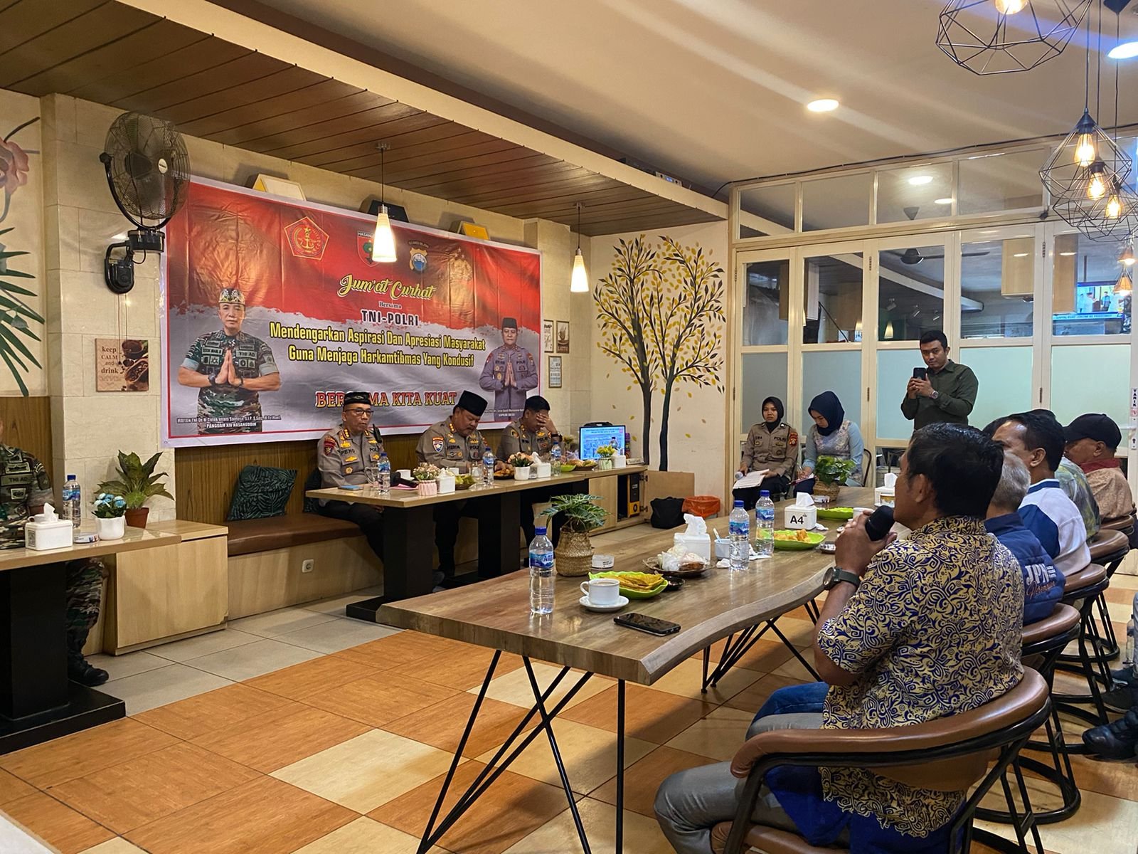 MEDIA BAHANA.COM, MAKASSAR –Dirbinmas Polda Sulsel Kombes Pol H. A. Heru Santo mewakili Kapolda Sulsel Terima Aspirasi Warga dalam kegiatan Jumat Curhat Di Cafe Daily, Jl.Nusantara, Kota Makassar, Jumat (26/05/2023).