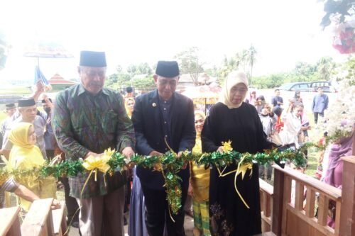 MEDIABAHANA.COM, WAJO — Bupati Wajo, Amran Mahmud saat bersama Anggota Komisi VII DPR RI, Andi Yuliani Paris (AYP) dan Ketua Kerukuanan Arung Lempong (KEKAL), Prof Wahyuddin Latunreng meresmikan Saoraja Baso Paria dan Lapangan Sepak Bola H. Andi Makkasau di Desa Lempong, Kecamatan Bola, Jum’at (30/6/2023).