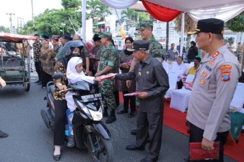MEDIABAHANA.COM, ASAHAN – Bupati Asahan eserta Forkopimda Kabupaten Asahan membagikan Bendera Merah Putih Kepada Masyarakat yang melintas di Jalan HOS. Cokroaminato Kisaran, Jumat (28/7/2023).