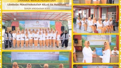 MEDIABAHANA.COM, PAREPARE — Ketua Dharma Wanita Persatuan Lapas Kelas IIA Parepare Ny. Nurhayati Totok Budiyanto menyelenggarakan pertemuan rutin Dharma Wanita Persatuan sekaligus memeriahkan HUT Kemerdekaan RI Ke – 78 Tahun 2023 dengan mengusung tema Terus Melaju Untuk Indonesia Maju.