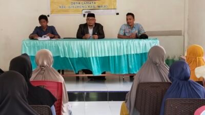 MEDIABAHANA.COM, WAJO — Anggota DPRD Kabupaten Wajo, H. Suriadi Bohari didampingi Kepala Bidang Rehabilitasi, Perlindungan, dan Jaminan Sosial Dinas Sosial P2KBP3A Kabupaten Wajo, menyerahkan bantuan 33 unit tandom (tempat penampungan air) kepada warga Desa Lamata Kecamatan Gilireng, di Aula Kantor Desa, Kamis 11/1/2024.