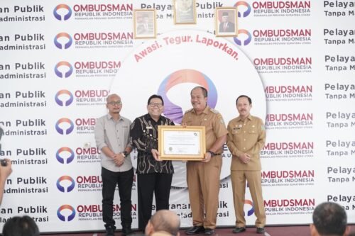 MEDIABAHANA.COM, ASAHAN – Pemerintah Kabupaten (Pemkab) Asahan yang diwakili oleh Wakil Bupati Asahan Taufik Zainal Abidin, S.Sos, M.Si menerima Piagam penghargaan yang diserahkan langsung Anggota Ombudsman Republik Indonesia (RI) Dadan Suparjo Suharmawijaya, Kamis (25/01/2024). Bertempat di Kantor Ombudsman RI Perwakilan Sumut, Jalan Asrama No 18 Medan.
