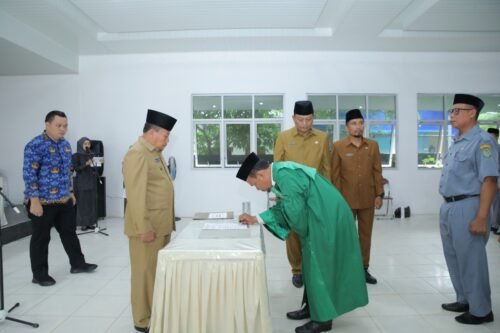 MEDIABAHANA.COM, ASAHAN – Asisten Administrasi Umum Kabupaten Asahan Drs. Muhilli Lubis melantik 43 Kepala UPTD terdiri dari 16 Kepala UPTD SMP, 23 Kepala UPTD SD, 5 Kepala UPTD TK Negeri di lingkungan Dinas Pendidikan Kabupaten Asahan di Aula Dinas Pendidikan Kabupaten Asahan, Sabtu (25/05/2024). Dengan mengikuti prosedur dan regulasi yang telah ditetapkan terkait izin pengangkatan dan pelantikan Kepala Sekolah di Lingkungan Pemerintah Kabupaten Asahan, maka dengan mengucapkan syukur “alhamdulillah” terbit surat Menteri Dalam Negeri Republik Indonesia nomor 100.2.2.6/3441/OTDA tanggal 10 Mei 2024 hal persetujuan pengangkatan dan pelantikan kepala sekolah di lingkungan Pemerintah Daerah Kabupaten Asahan serta surat Gubernur Sumatera Utara nomor 800.1.3.3/103/2024 tanggal 16 Mei 2024 hal persetujuan pengangkatan dan pelantikan Kepala Sekolah di lingkungan Pemerintah Daerah Kabupaten Asahan, maka pada hari ini, saya laksanakan kembali pengambilan sumpah/janji dan pelantikan kepala UPTD SMP, SD, TK Negeri di Lingkungan Dinas Pendidikan Kabupaten Asahan.