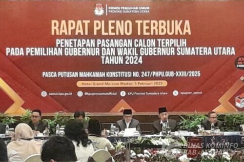 MEDIABAHANA.COM, ASAHAN – Komisi Pemilihan Umum (KPU) Provinsi Sumatera Utara (Sumut) menetapkan pasangan nomor urut 1 Bobby Afif Nasution – Surya sebagai Pasangan calon (Paslon) terpilih Gubernur dan Wakil Gubernur Sumut Periode 2025 -2030. Penetapan tersebut setelah KPU Sumut menggelar Rapat Pleno Terbuka Penetapan Pasangan calon (Paslon) terpilih pada Pemilihan Gubernur dan Wakil Gubernur Sumut tahun 2024 yang digelar di Hotel Mercure Jalan Perintis Kemerdekaan, Kota Medan, Provinsi Sumut, Rabu (05/02/2025).