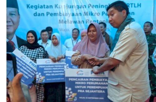 MEDIABAHANA.COM, WAJO — Menteri Perumahan dan Kawasan Permukiman (PKP) RI menyalurkan pembiayaan mikro perumahan untuk perempuan prasejahtera di Kabupaten Wajo, Sulsel, Jumat (12/9/2025).