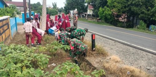 MEDIABAHANA. COM, WAJO – Personel Koramil 1406-06/Pammana dipimpin oleh Pelda Rahmat Pangsasean melaksanakan kegiatan Karya Bakti pembersihan saluran air bersama para siswa di SDN 244 Pammana, Kecamatan Pammana, Kabupaten Wajo.