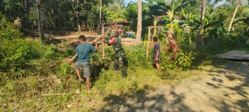 Babinsa Koramil 1406-09/Sajoanging, Koptu Yusran, melaksanakan kegiatan karya bakti (gus)