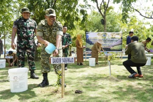 Dandim 1406/Wajo, Letkol Inf Harianto, S.I.P., turut ambil bagian dalam kegiatan tersebut bersama unsur Forum Koordinasi Pimpinan Daerah (Forkopimda) dan masyarakat. Kehadiran TNI dalam gerakan ini menjadi bentuk dukungan nyata terhadap program pelestarian lingkungan dan penguatan ketahanan wilayah dari aspek ekologi.
