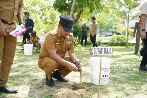 Penanaman pohon ini dipimpin Bupati Andi Rosman didampingi Sekda dan unsur Forkopimda, diantaranya Kapolres Wajo, Dandim 1406 Wajo, Kajari Wajo, Ketua DPRD, serta Kepala OPD terkait.