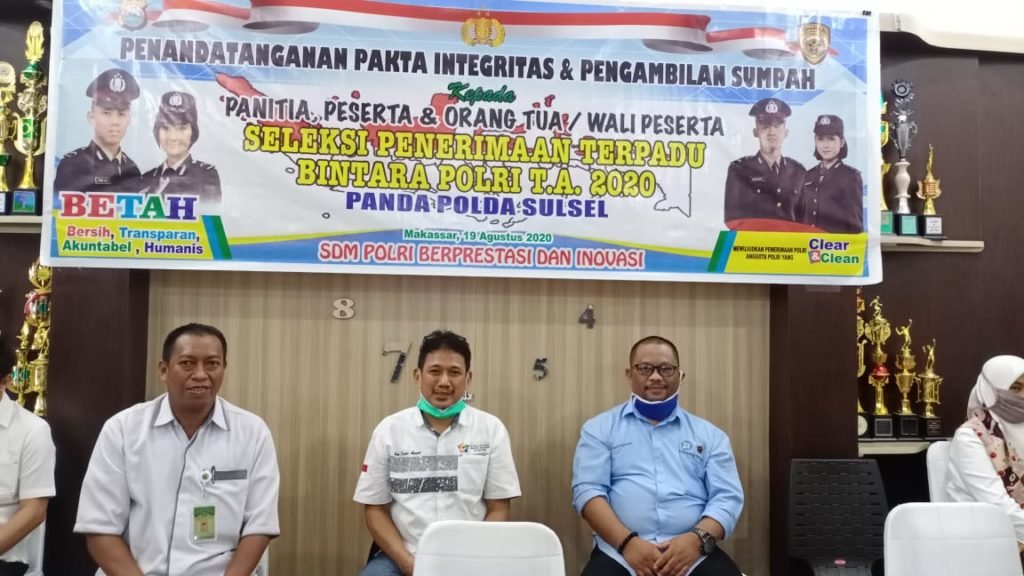 Hal tersebut disampaikan Kabag Sumda Polres Wajo, Kompol Wigino, usai penandatanganan Pakta Integritas Seleksi Penerimaan Terpadu calon Bintara Polri tahun 2020 secara virtual di Mapolres Wajo, Rabu 19 Agustus 2020.