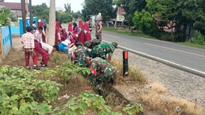 TNI Bantu Atasi Masalah Lingkungan, Koramil 1406-03/Maniangpajo Gelar Karya Bhakti Bersihkan Drainase di Kelurahan Dualimpoe