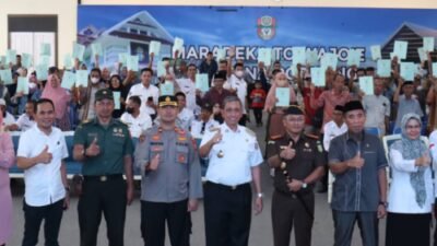 MEDIABAHANA.COM, WAJO — Bupati Wajo, Amran Mahmud menyerahkan Sertipikat Tanah Gratis Program Lintas Sektoral bagi…
